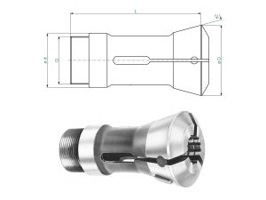 The collets are made from special spring steel. Where possible, by partial tempering, the hardness of the taper and clamping bore is approx. HRc 60. The shank and sprung area are hardened to spring temper.