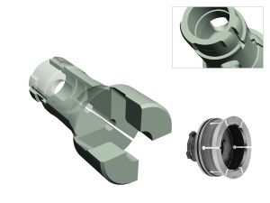 Collets with bayonets are very often used for clamping collets in the draw-in attachment. This bayonet can be attached to the shaft of the collet on both the outside and the inside.