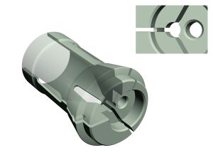 Depending on the workpiece that needs clamping we are able to manufacture collets with eccentric clamping bores. For each workpiece the collet is manufactured as a one-off special collet, or a standard collet from stock can be converted.