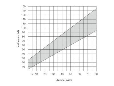 Feed fingers are supplied sprung together so that, when the dimensions are nominal, they pre-tension the workpiece rods. The feed force table below gives the reference values.