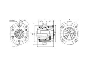 These clamping attachments are similar to type HESK attachments. The only difference is that we use collets with bayonets. In opposition to clamping attachments type HESK-R the collet on these devices is attached and secured from the front or top. The time required to change from one clamping diameter to the next is reduced to a minimum.