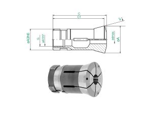 art. no. | D | D1 | D2 | L | L1 | L2 | L3 | B | Tk | collet type |