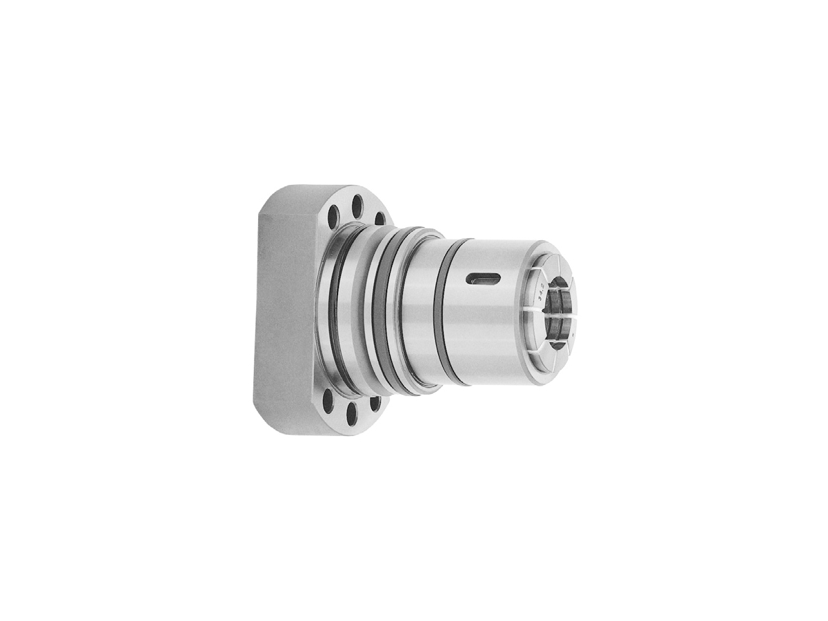 Type HESK clamping units can be mounted in a housing which is specific to the customer. Thus, the individual clamping units can be arranged according to requirements. The collets are equipped with a plane shoulder on the thread where they are tightened by means of a nut. That way they are absolutely fixed during clamping, no axial movements are possible.