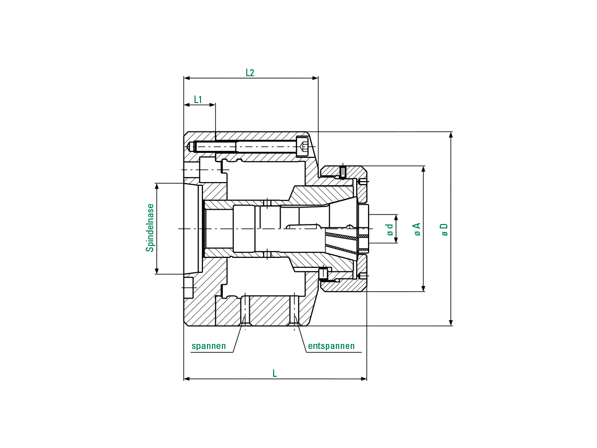 | Art.-Nr. | Spindelnase | D | A | L | L1 | L2 | Spannbereich | Stahl-Spannzangen | Rubberzange |