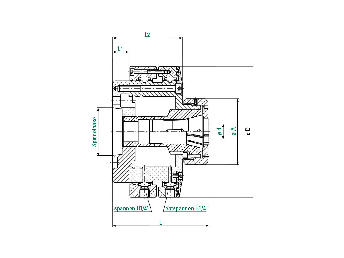 - voller Spindeldurchlass, da der Spann-zylinder im Futter integriert ist