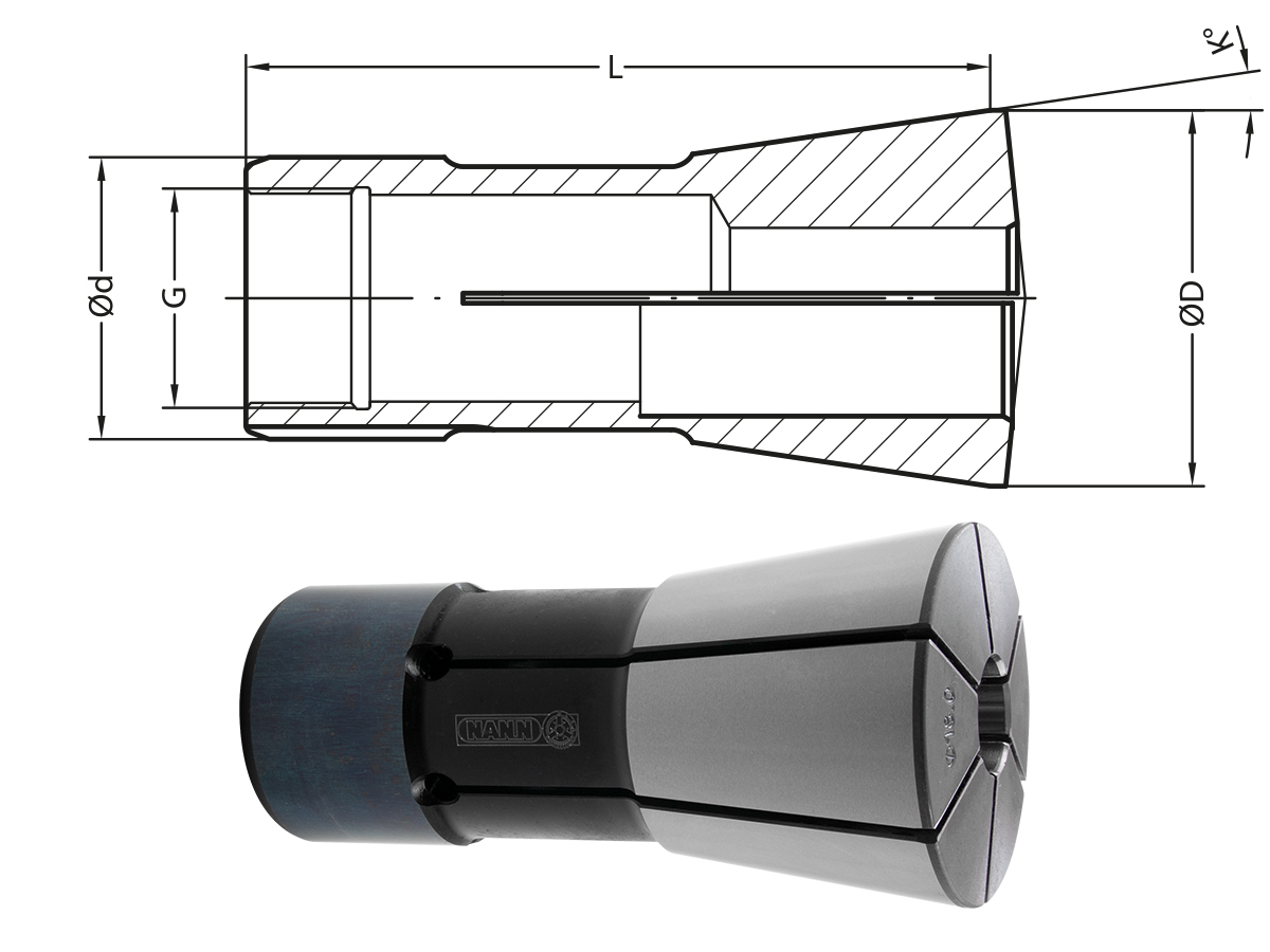 Die Spannzangen sind aus einem speziellen Werkzeug-Federstahl gefertigt. Kegel und Spannbohrung weisen eine Härte von HRc 58 bis 60 auf.