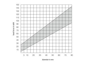 The feed force table below gives the reference values. A hardened ground test mandrel with a tolerance of h7 must be used for checking.