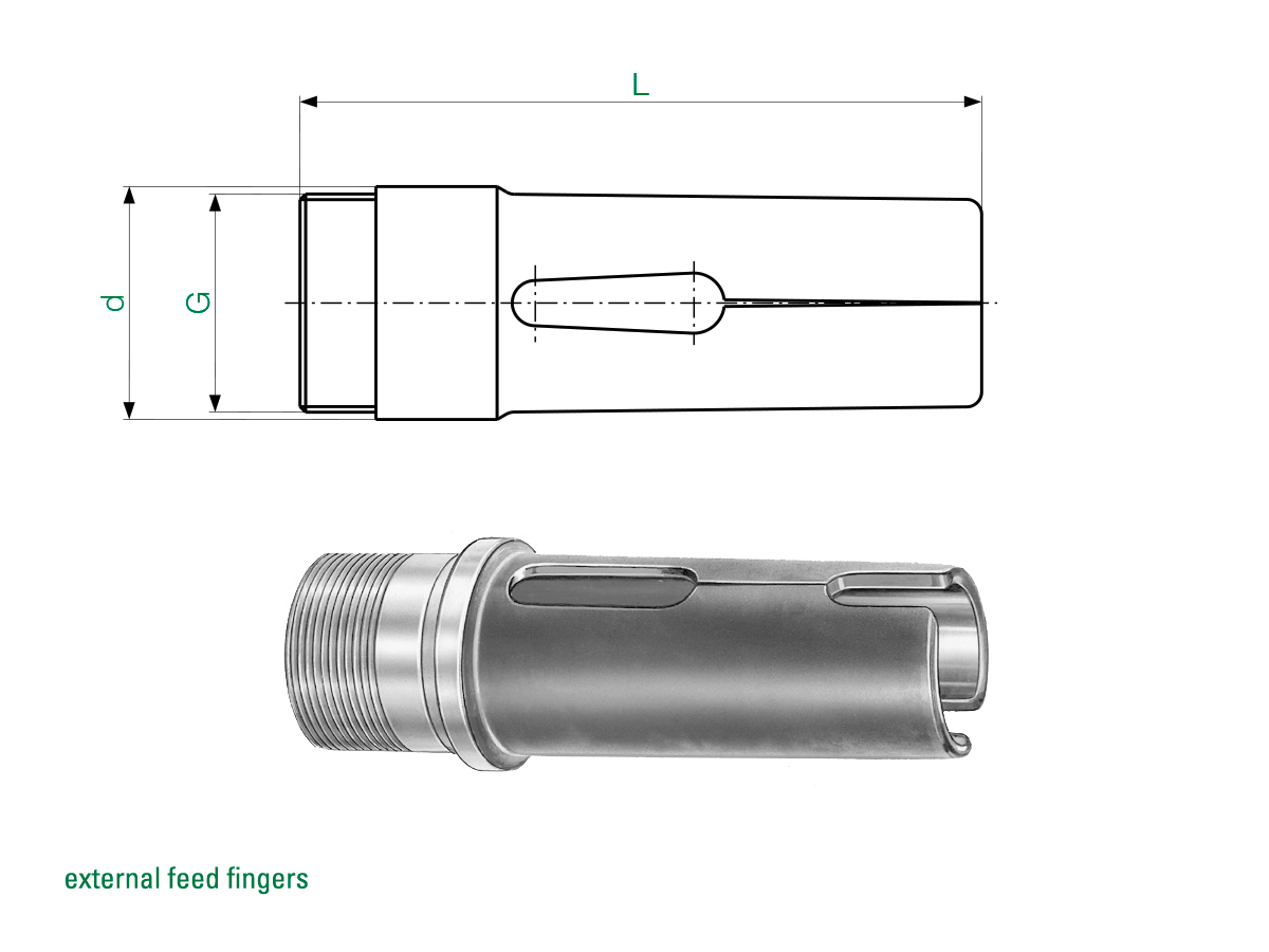 - as pick-up collets for moving up workpiece bars on NC lathes for repositioning of workpieces