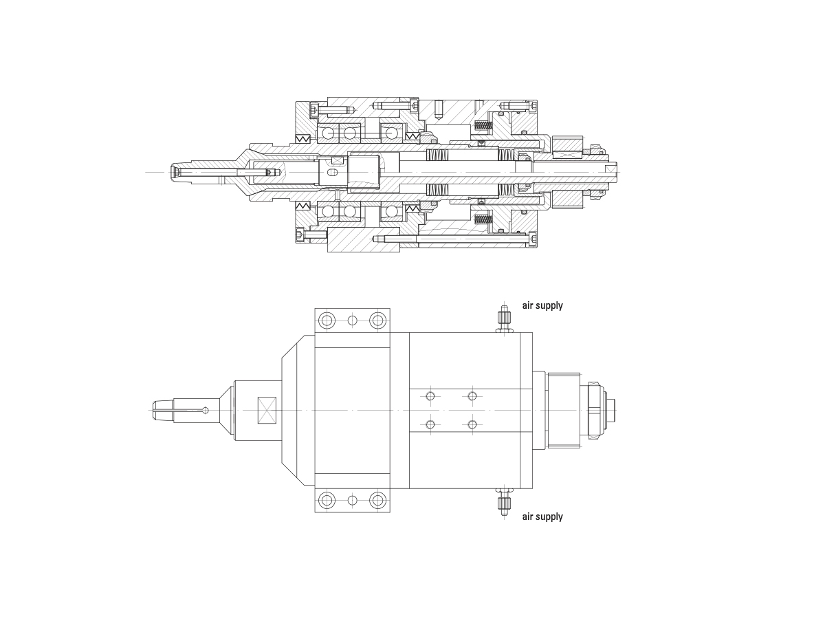 Spindle units for deadlength collets pneumatically operated – double-action piston