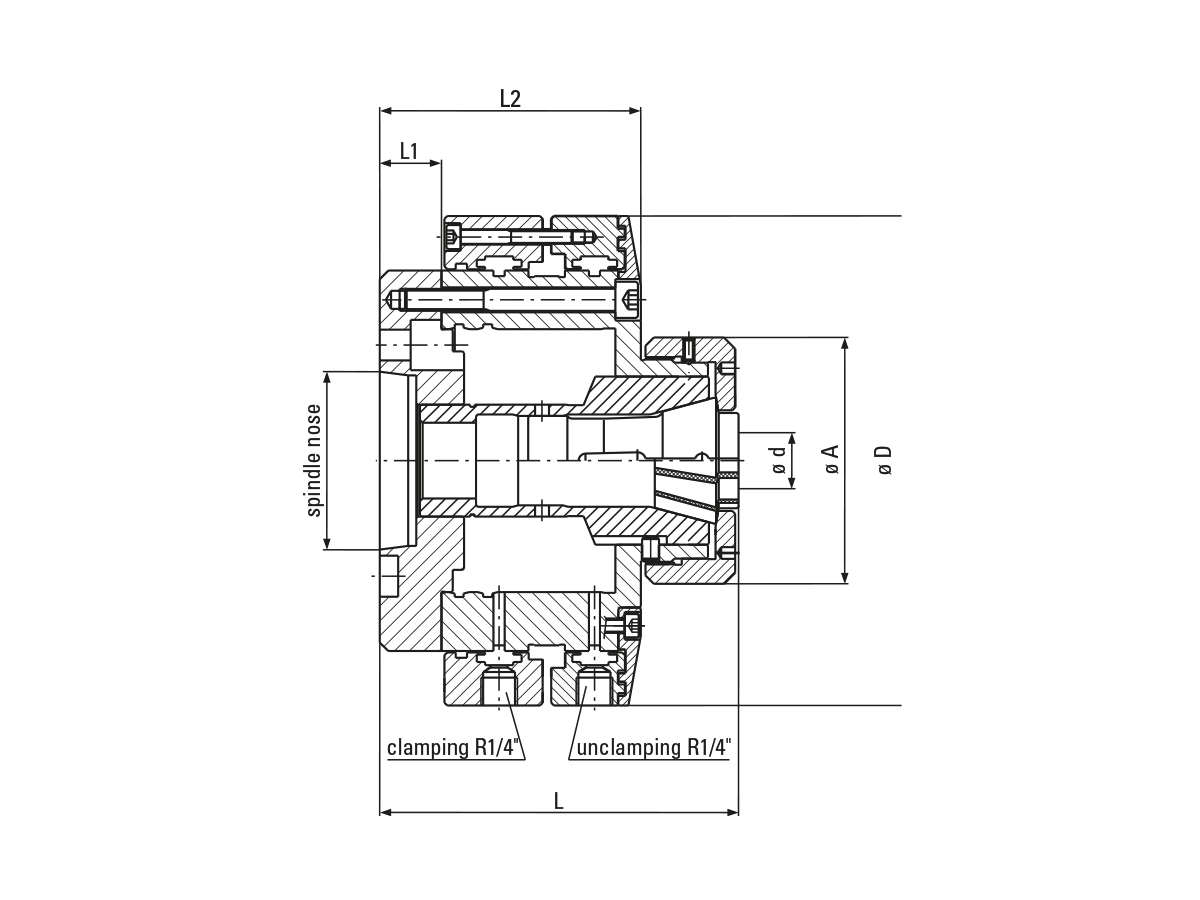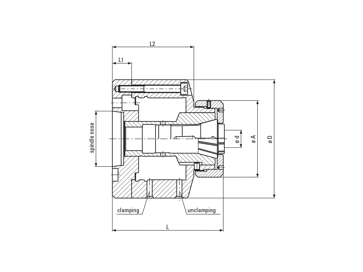 - full spindle capacity as the clamping cylinder is integrated in the chuck